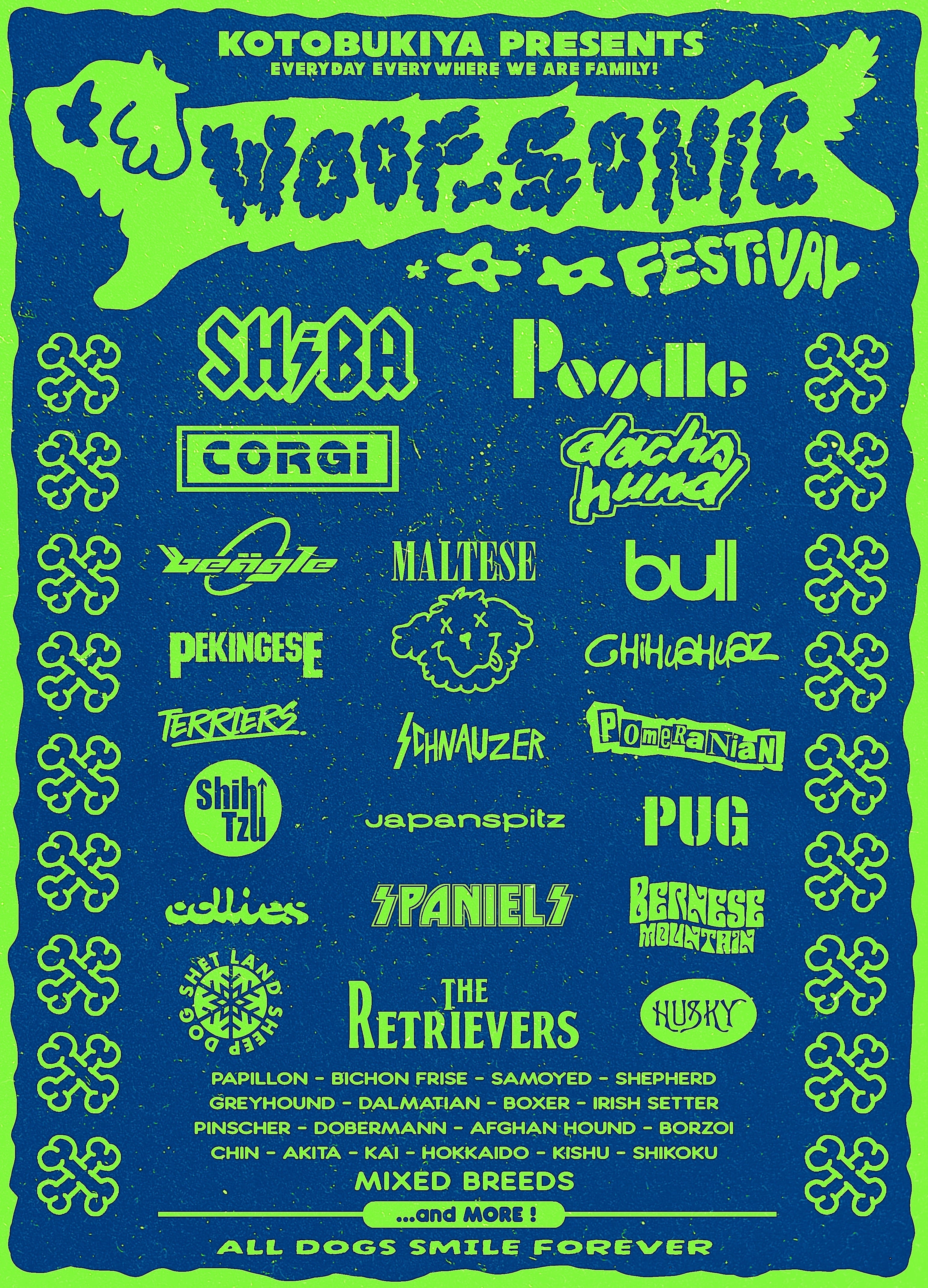 いぬたちの音楽フェスをイメージしたグラフィックを、シルクスクリーンTシャツにしました。