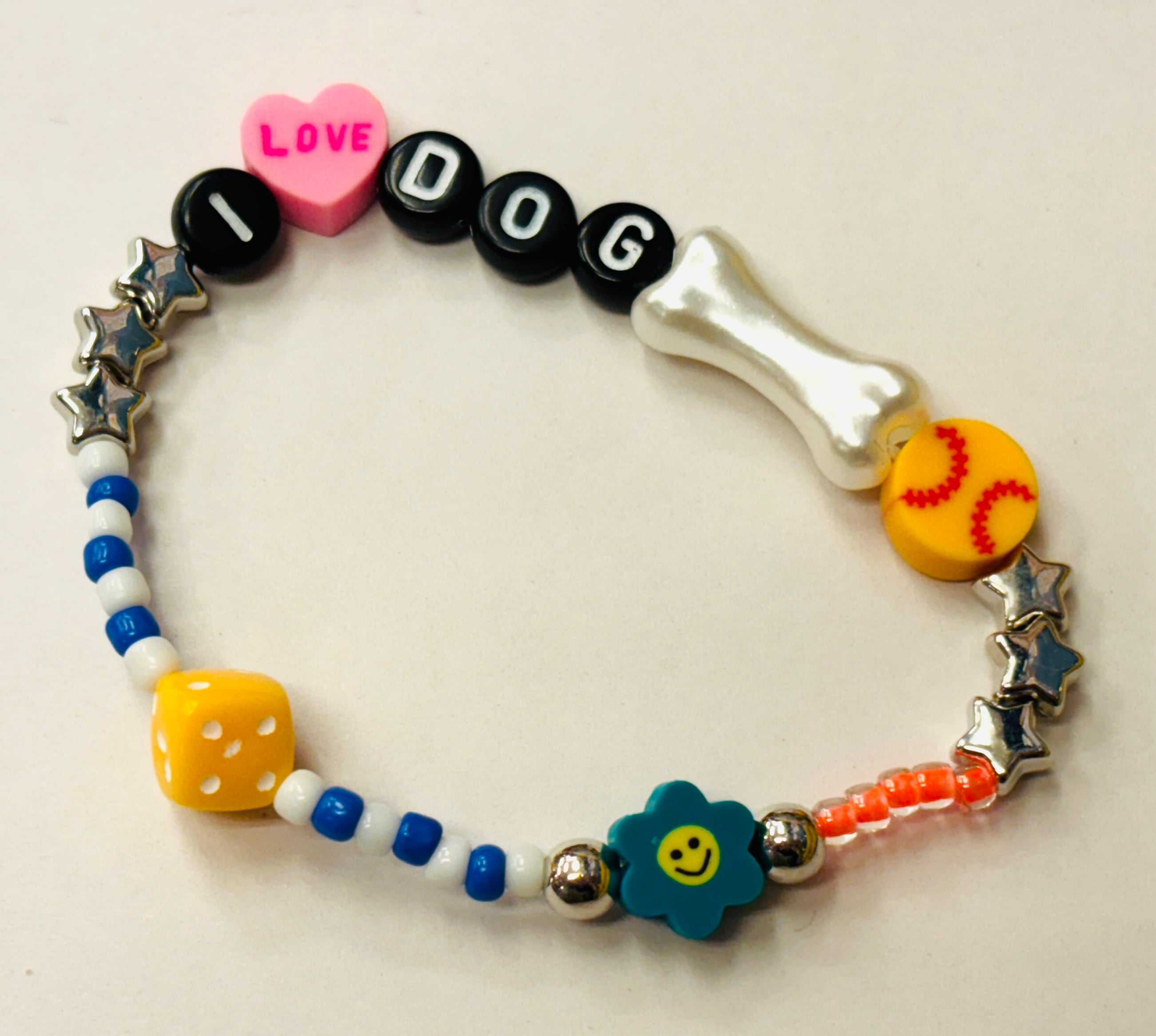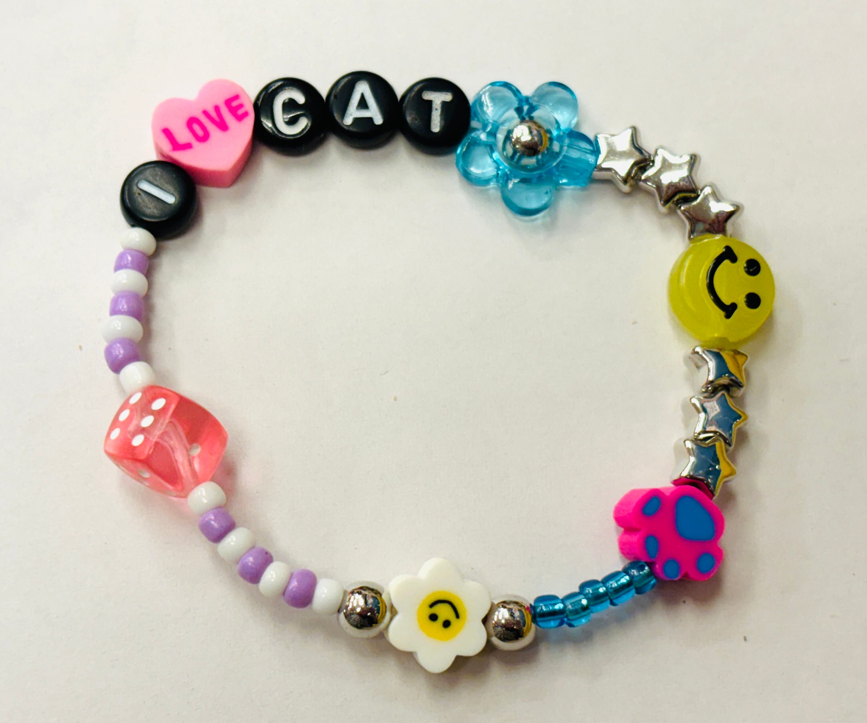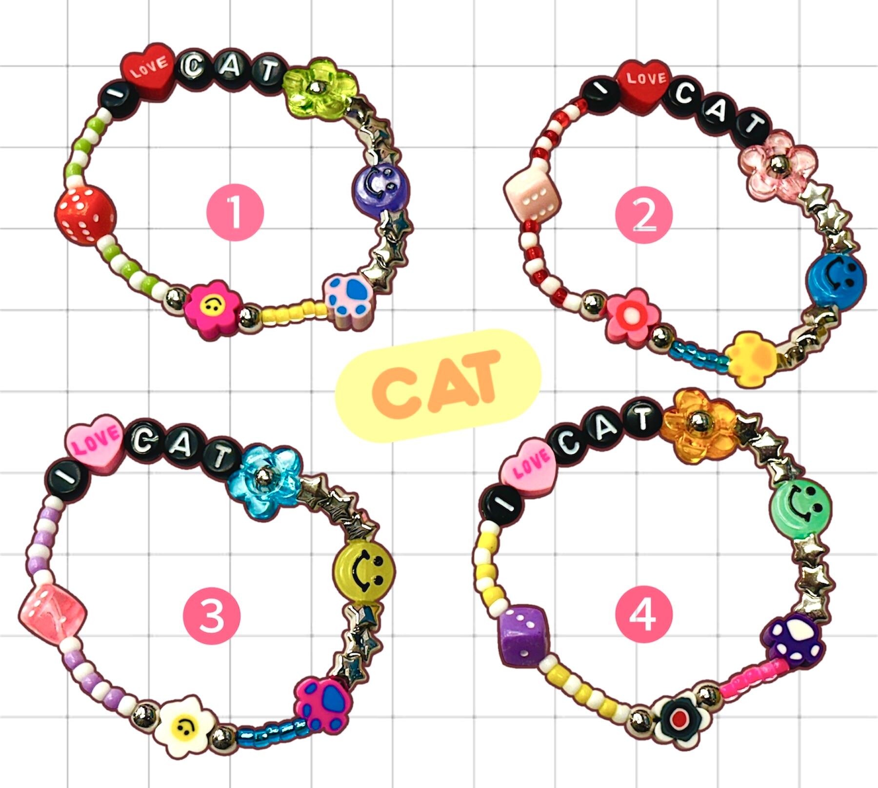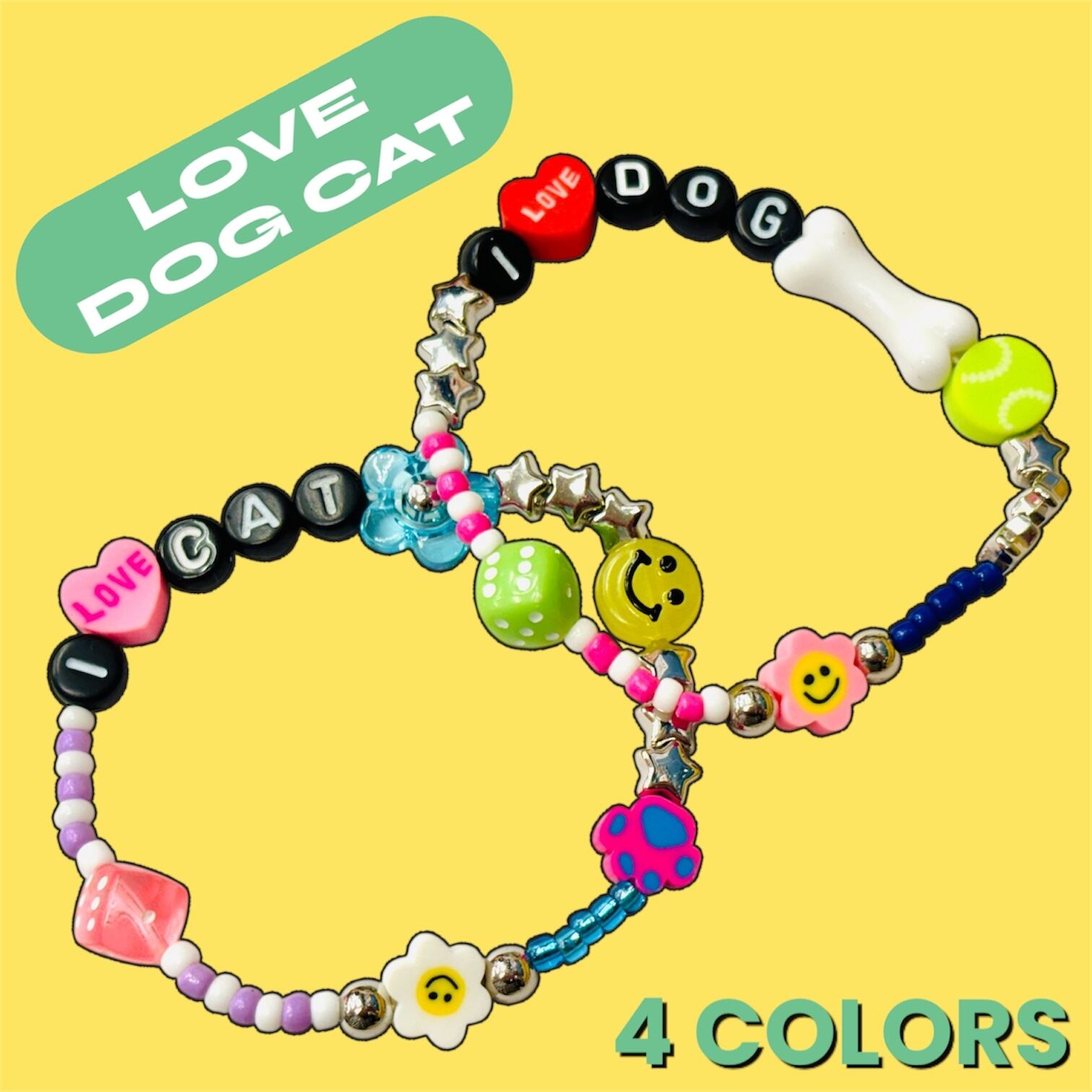 ワンちゃんとネコちゃんにいつもありがとうの気持ちを込めたビーズのハンドメイドブレスレットです。色違いでそれぞれ一点ものです!