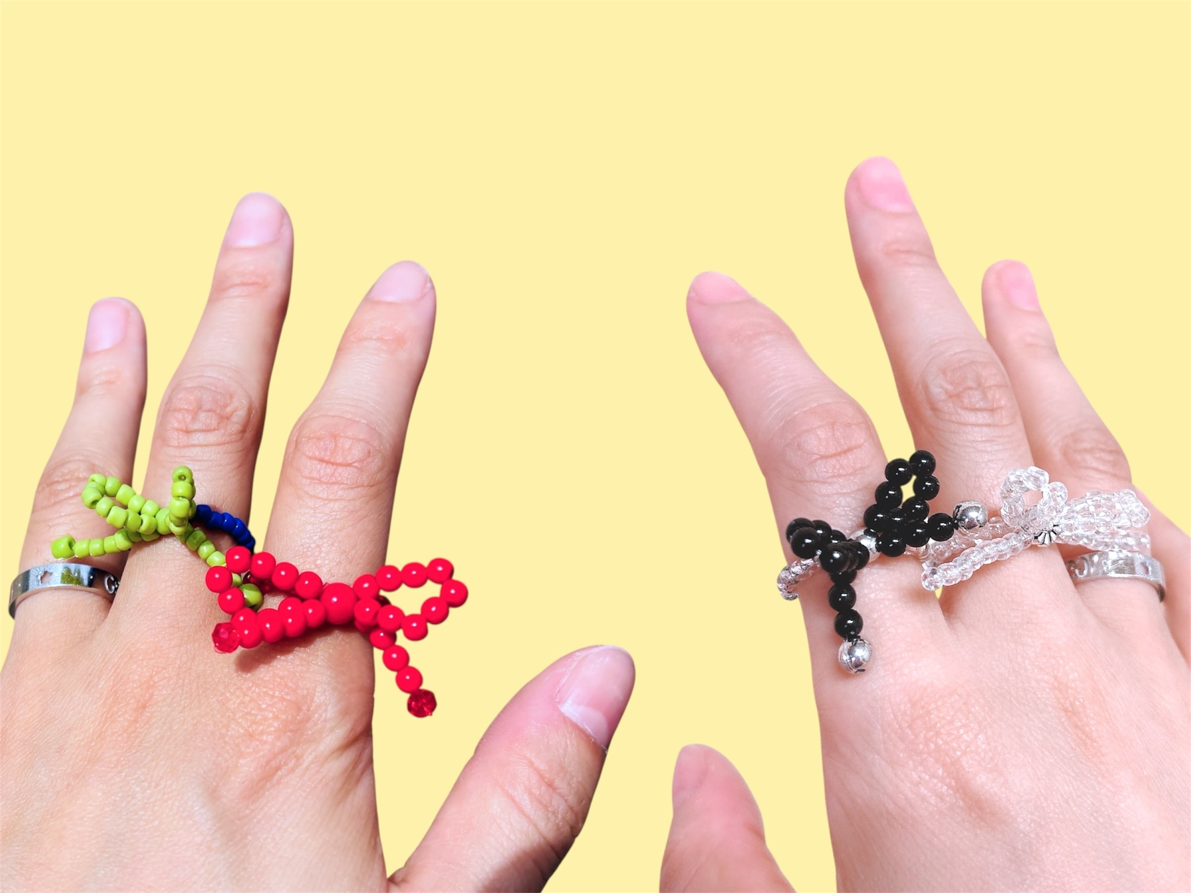 ゴムテグスを使ったフリーサイズのビーズリングです。 ※およそ周6cm